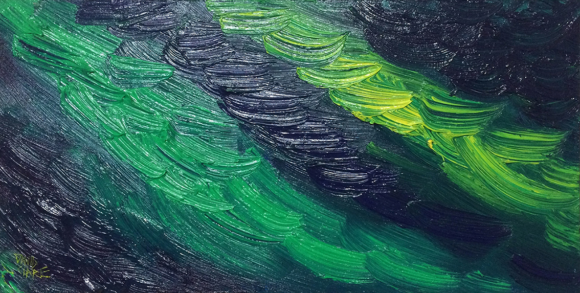 Although it might look like paint splashed on a canvas, this Painting is very important to me. Created in a fleeting moment, simply using up old tubes of paint, I instantly realised, and appreciated the paint itself. The thick, rich spontaneous brushstrokes are a work of art in themselves, and could never be re-created. More like a scuplture, than a painting, this small piece set me off in a new direction, letting the medium lead the way…going with the flow.