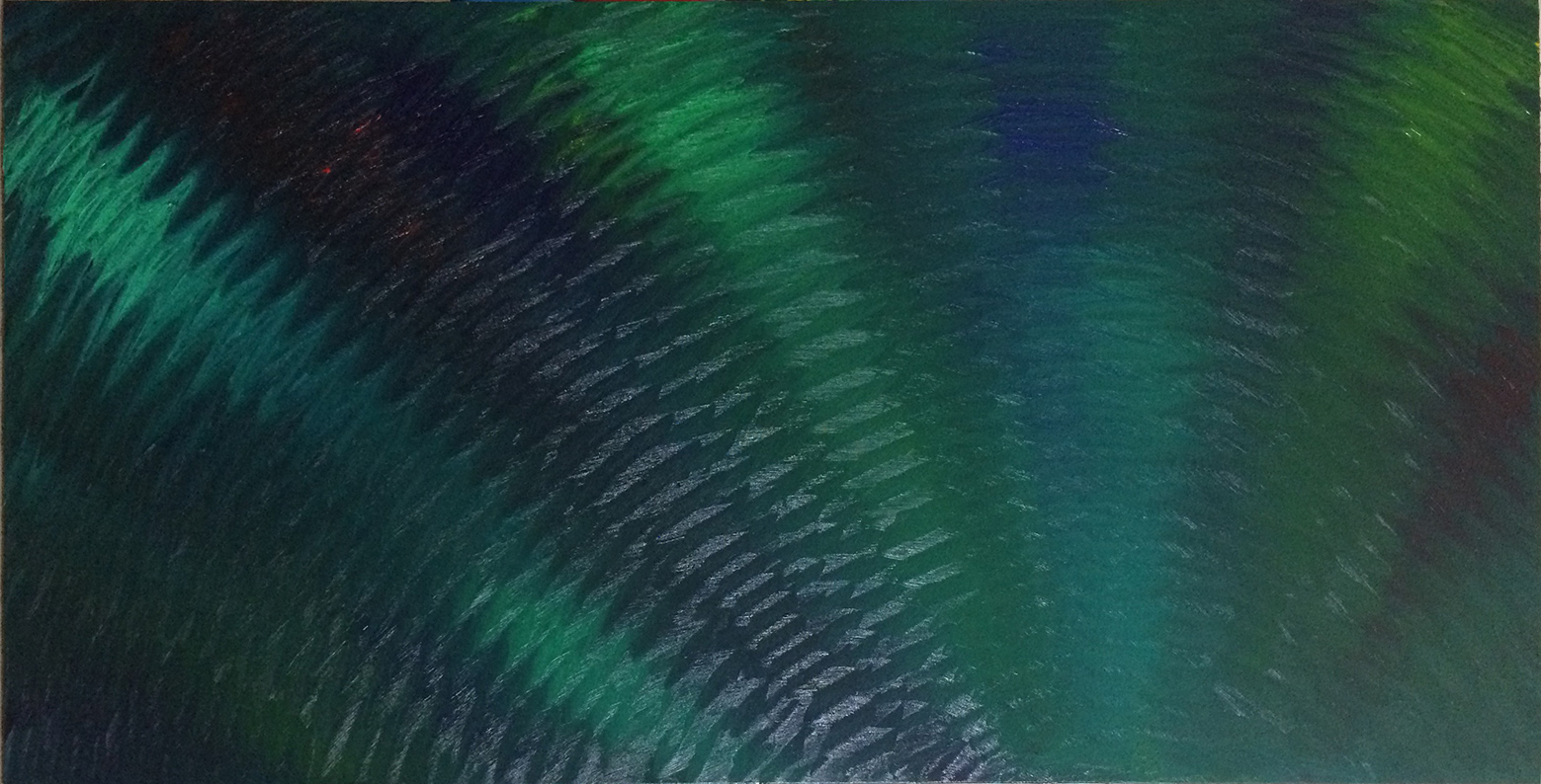 Thick oil paint applied so that the brush strokes catch the light and create a ripple effect.