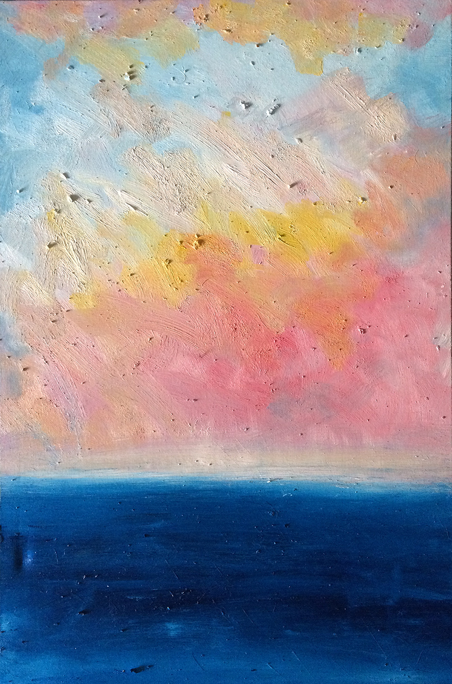 A bright and breezy abstract in thick Oils….I think I’ll call it “Like A Moth To The Flame”…why? Because it was so attractive to this little fella (see 3rd photo), he just couldn’t resist diving in to the painting. Now I know its not a moth, but A Mosquito to the Flame just doesn’t have the same ring to it. I think I’ll keep him, encased in varnish, Jurassic Park style… Or, maybe I’ll call it “Spot The Mossie”? Can you find him/her?